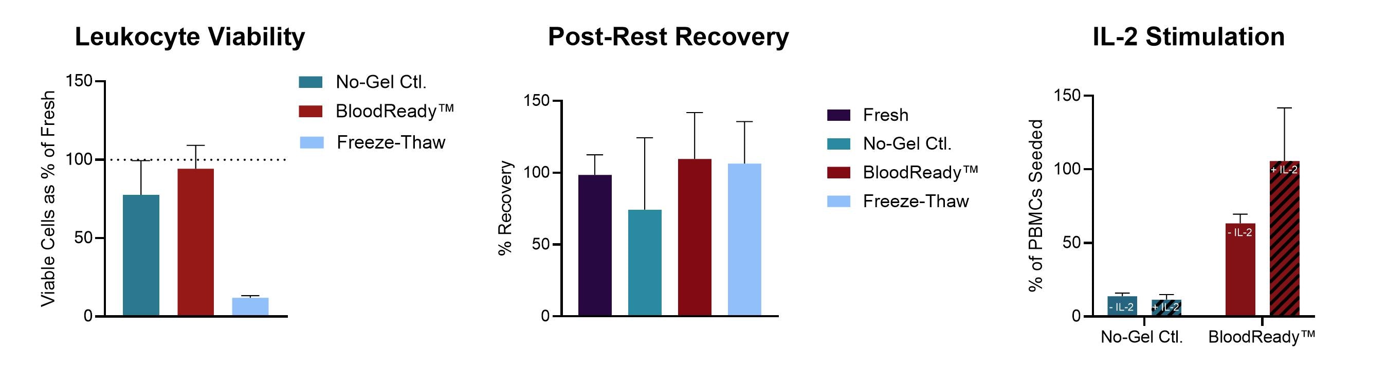 Storage of whole blood in BloodReady improves PBMC yield, post-rest recovery, and response to IL-2 stimulation when returned to culture. BloodReadyTM is a suitable storage solution for subsequent PBMC isolation and application.