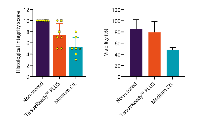 Pieces of fresh tissue are protected by immersion in our TissueReady™ formulation
