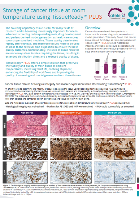 It’s designed to be extraordinarily simple to use for the field-based collection of tissue samples, such as fresh biopsies. The kit comprises two vials; the piece of tissue is added to Vial A, and the contents of Vial B are then added to it and the vial is capped. The gel forms and the sample can be shipped, and the tissue is recovered at the destination by adding the release buffer to dissolve the gel.